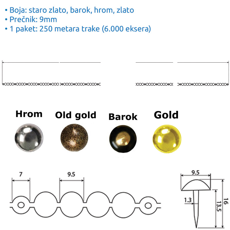 Ukrasni ekseri fi 9mm na traci
